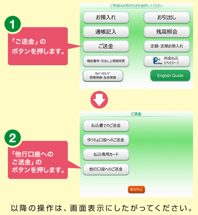 他金融機関あてに送金する際のatmの操作手順を教え よくあるご質問 株式会社ゆうちょ銀行