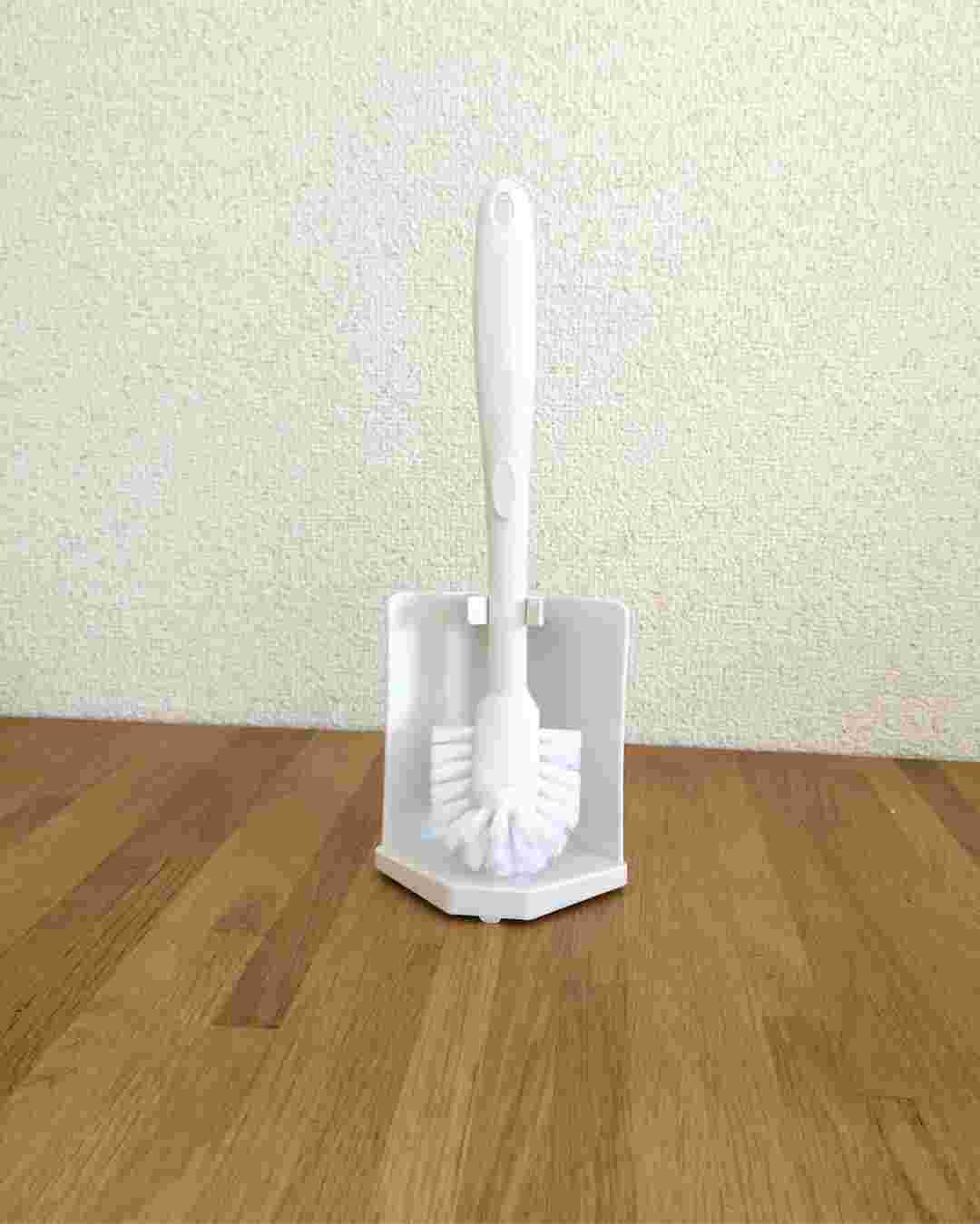 トイレブラシは使い捨ての 流せるトイレブラシ を使っています 詰め替えのブラシ部分を入れておくケースは 100均セリアにぴったりのものがありました これぞシンデレラフィット というケースです スクラビングバブルの流せるトイレブラシを使っています ブラシの