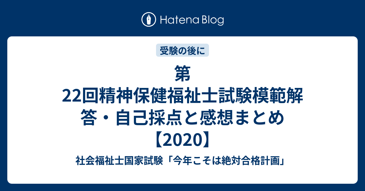 第22回精神保健福祉士試験模範解答 自己採点と感想まとめ 2020 社会福祉士国家試験 今年こそは絶対合格計画